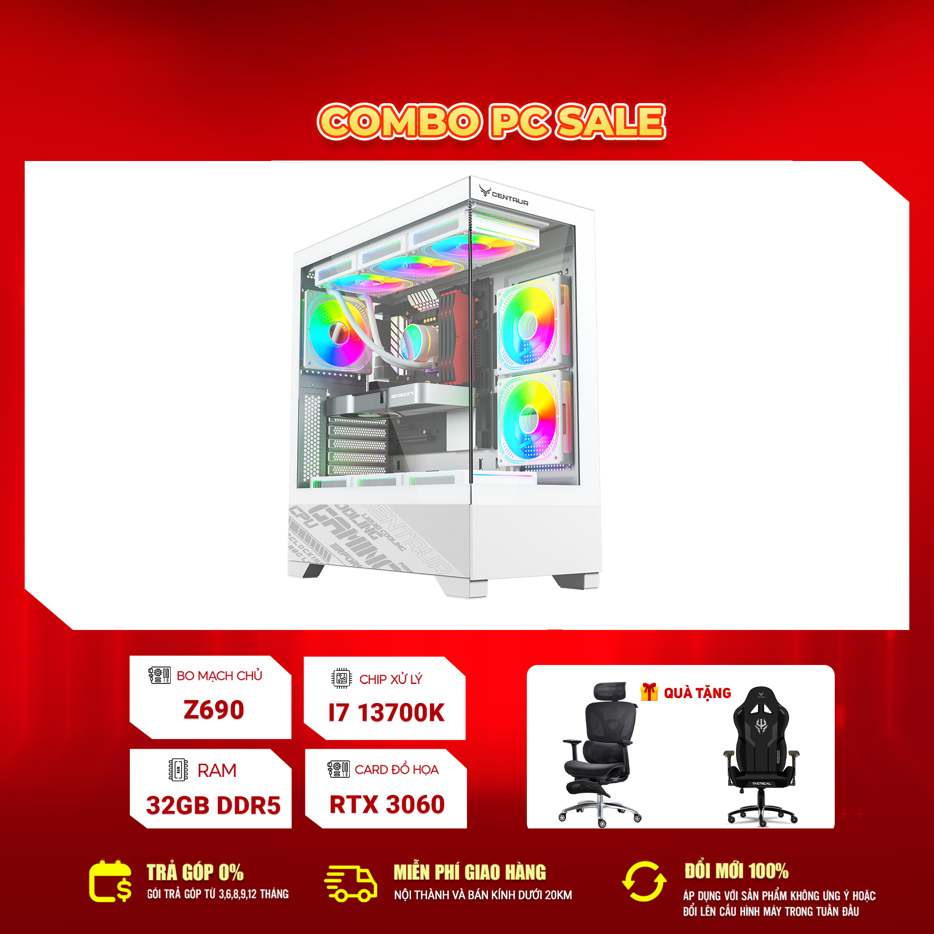- Tặng Ghế Gaming Centaur CRA/ Ghế Công Thái Học CT OC02 trị giá 3.000.000vnđ