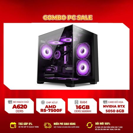 Bộ máy tính sử dụng CPU Ryzen 5 7500F kết hợp cùng card đồ họa RTX 5050 8GB mang đến hiệu năng mạnh mẽ, đáp ứng tốt mọi nhu cầu từ chơi game, làm việc văn phòng đến thiết kế đồ họa.