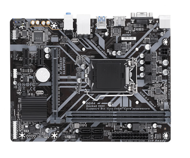 Sử dụng chipset Intel H310, hỗ trợ socket LGA 1151, tương thích với các dòng CPU Intel Core thế hệ 8 và 9. Điều này giúp người dùng có nhiều lựa chọn từ Intel Pentium, Core i3, i5, i7, phù hợp với các nhu cầu từ văn phòng đến gaming cơ bản.
