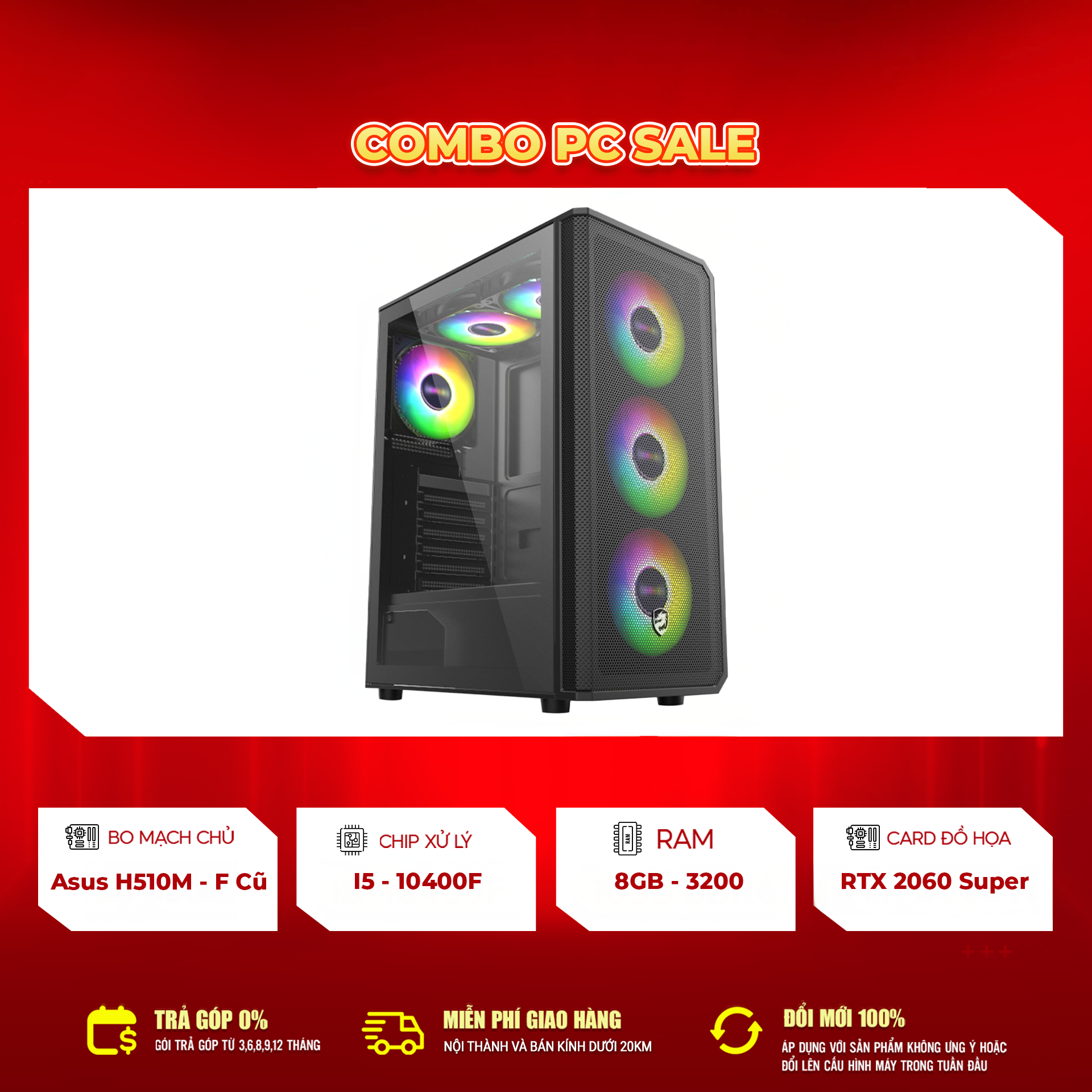 PC i5-10400F + RTX 2060 Super là lựa chọn tuyệt vời trong phân khúc gaming tầm trung. Dàn máy mang lại trải nghiệm mượt mà, ổn định, chơi game tốt và có khả năng nâng cấp dễ dàng trong tương lai. Với mức giá hợp lý và bảo hành rõ ràng, đây là bộ PC phù hợp cho mọi nhu cầu từ học tập đến giải trí.