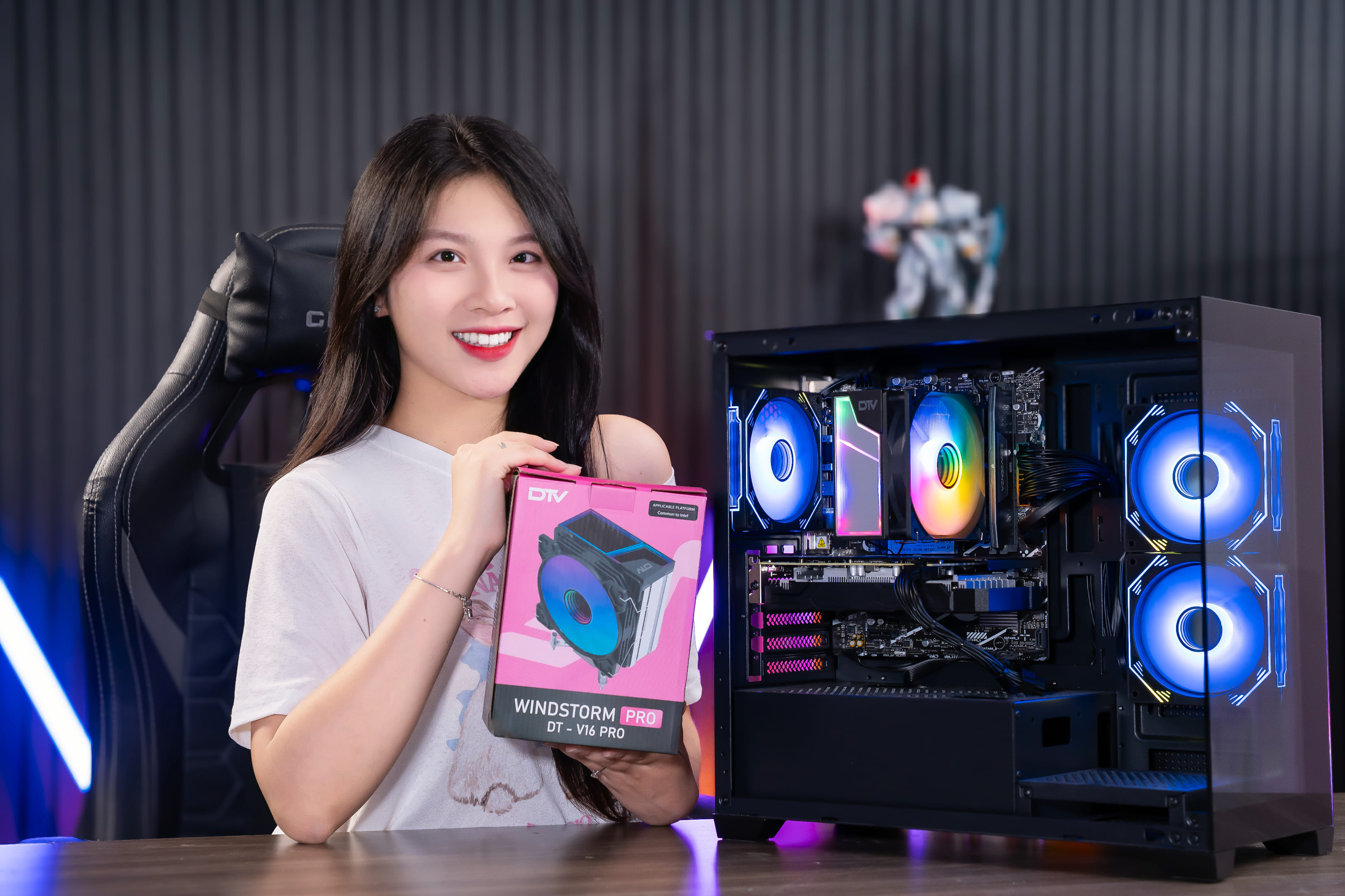 Windstorm Pro DTV-V16 Pro không chỉ mạnh mẽ mà còn đẹp mắt với dải LED RGB vô cực, hiệu ứng ánh sáng lan tỏa 360°, giúp tản nhiệt trở thành điểm nhấn nổi bật trong hệ thống PC. Phù hợp cho các case có mặt kính trong suốt, giúp tôn lên phong cách gaming chuyên nghiệp.