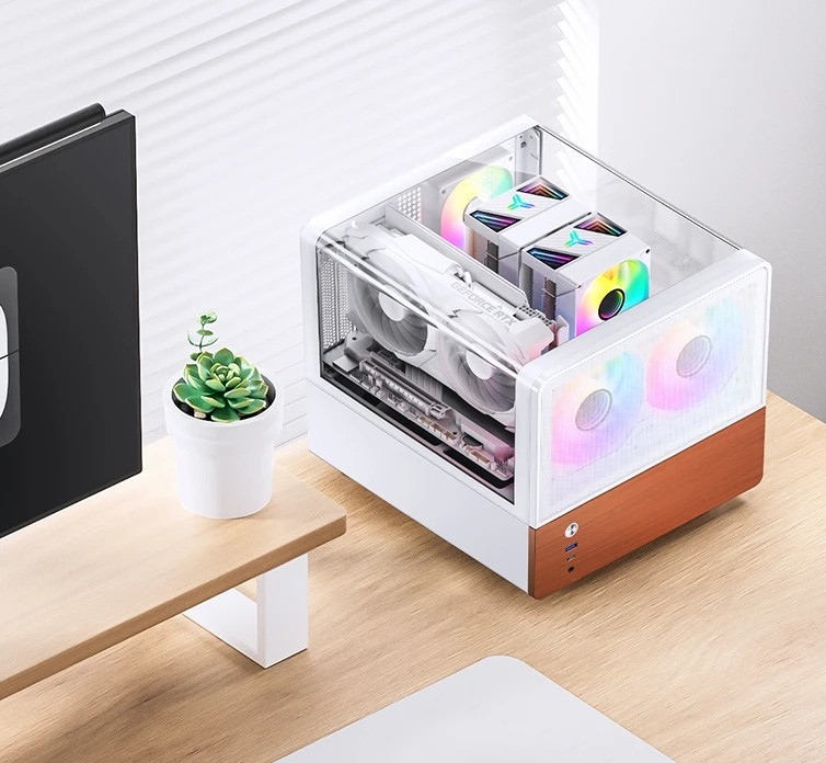 JONSBO V12 mang ngôn ngữ thiết kế tối giản, kết hợp giữa khung thép SGCC dày dặn, mặt kính cường lực 4mm và chi tiết gỗ tự nhiên tạo nên vẻ đẹp sang trọng, bền bỉ và đậm tính thẩm mỹ.