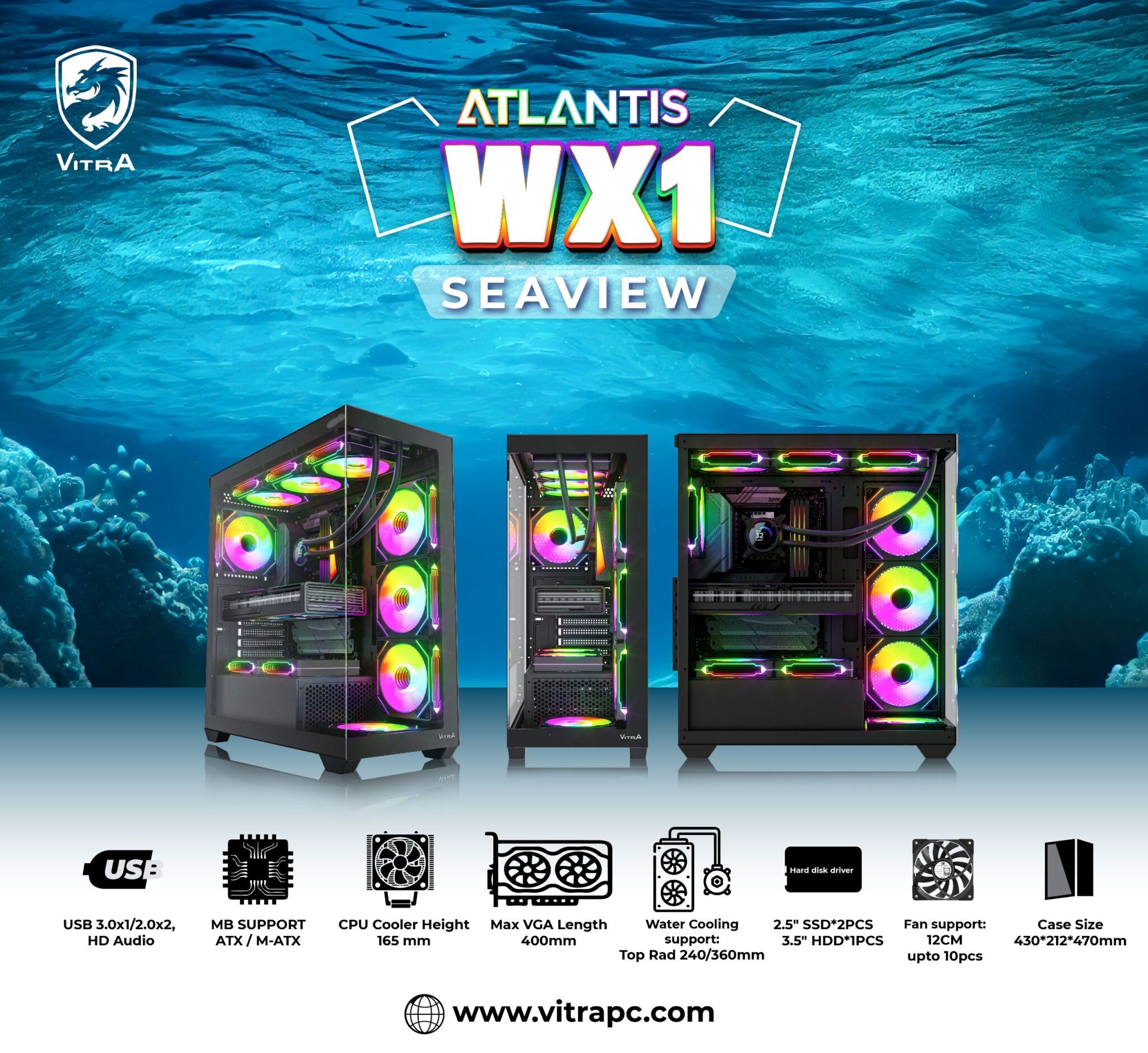 VỎ MÁY TÍNH VITRA ATLANTIS WX1 BLACK