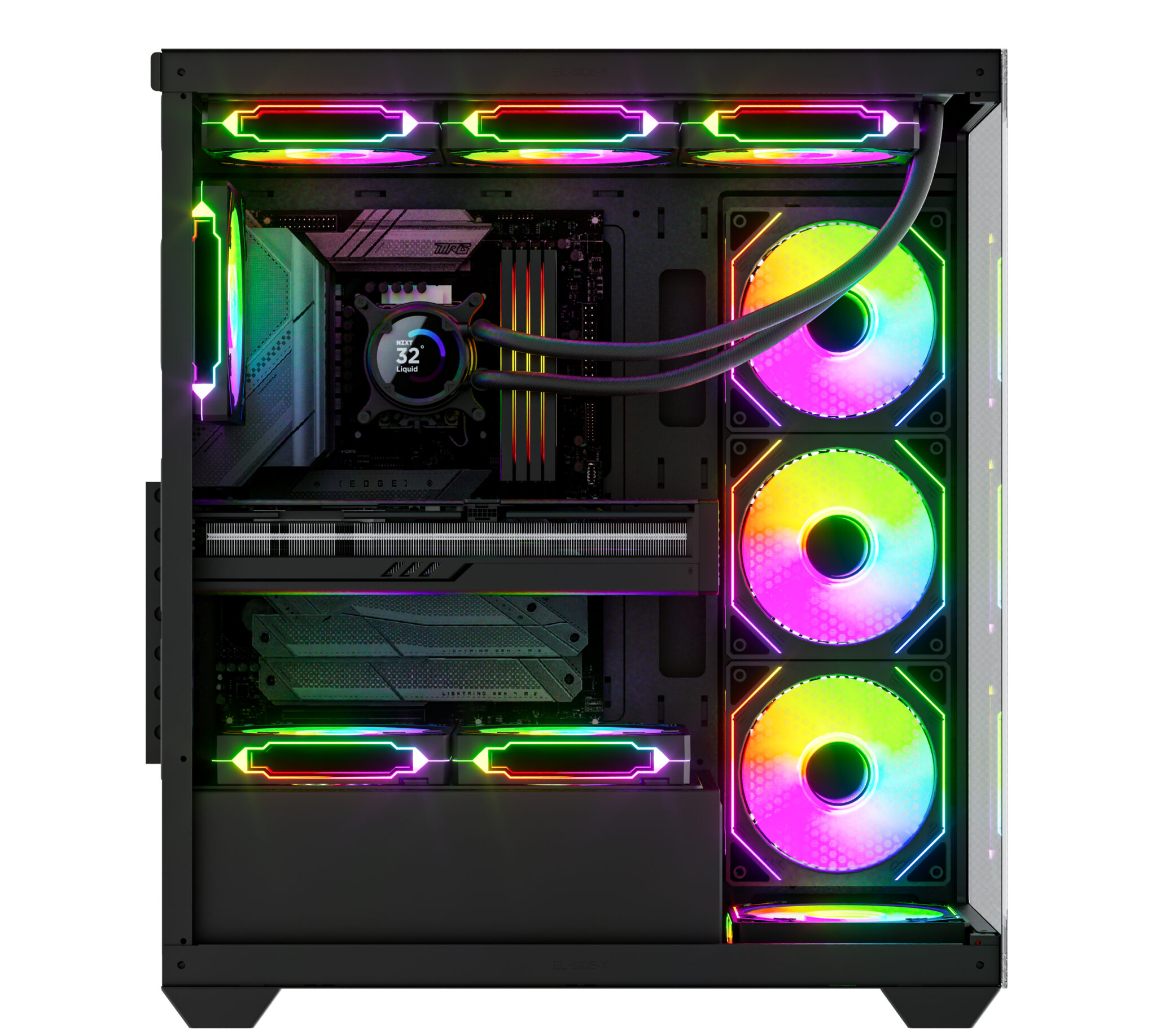 - Quạt sẵn: 3 quạt ARGB mặt trước