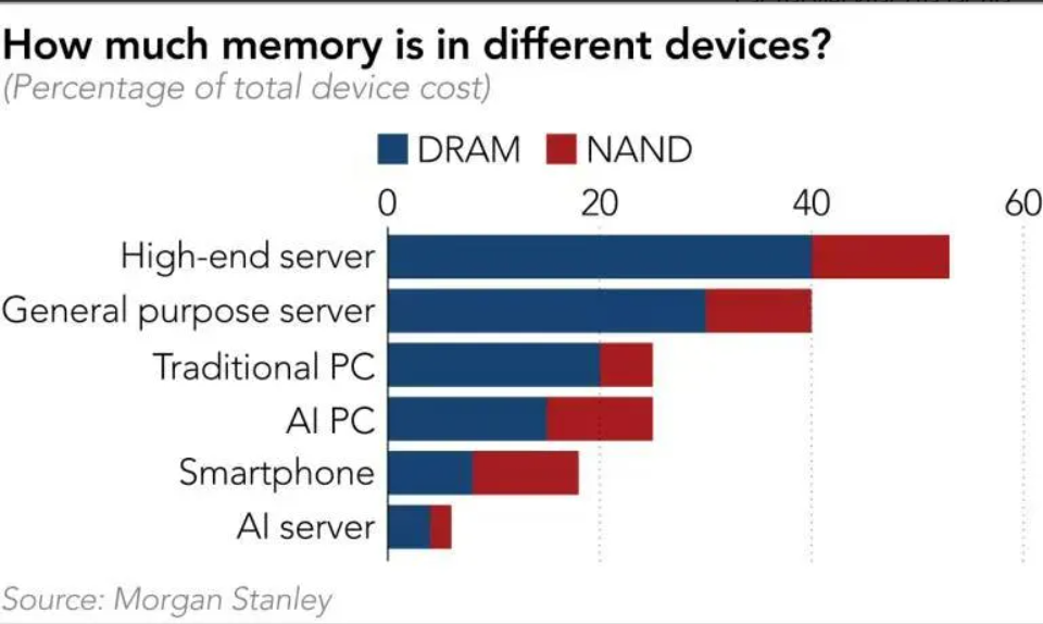 - Máy chủ AI cần lượng RAM khổng lồ (DRAM, DDR5, đặc biệt là HBM)