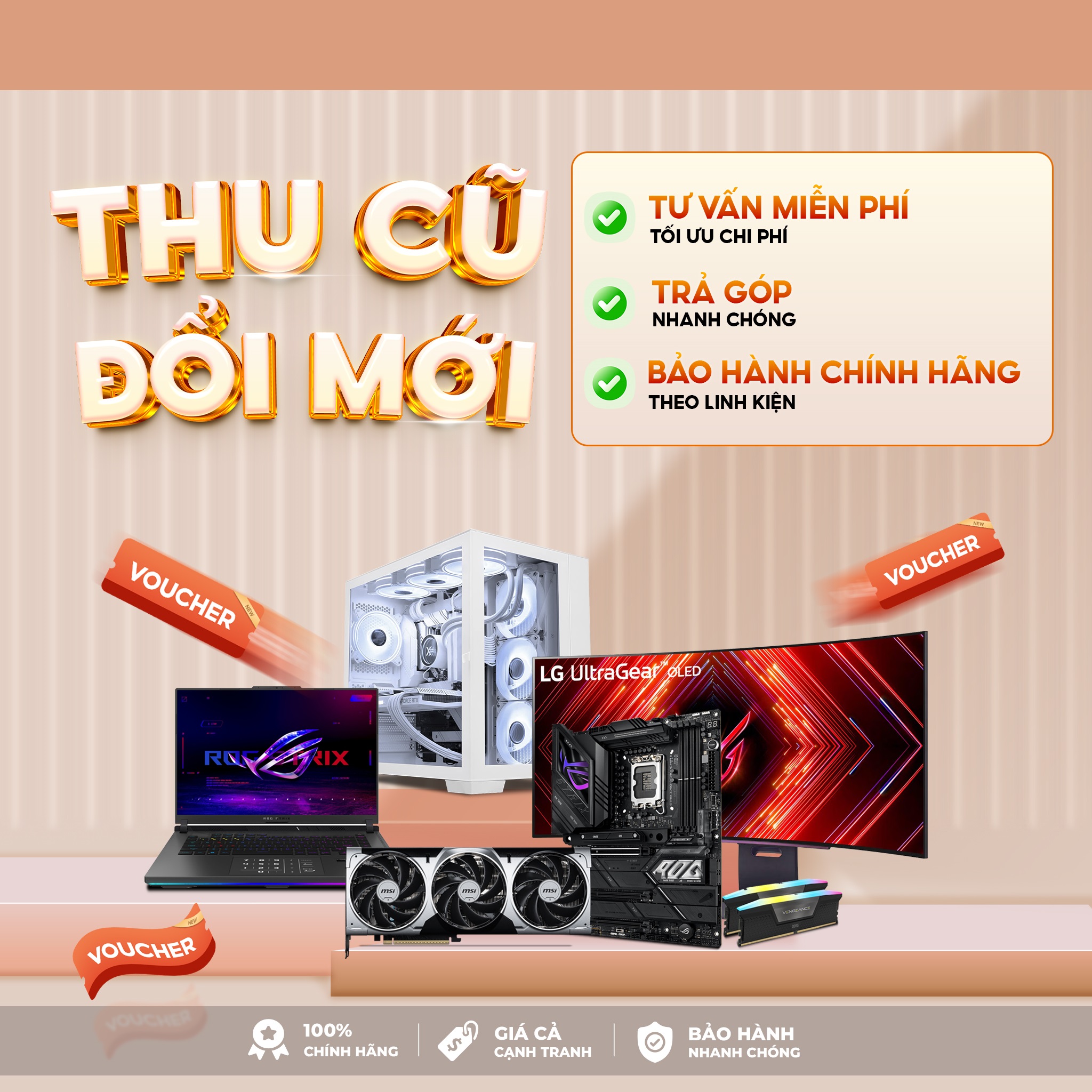 Chương trình “Thu Cũ Đổi Mới” là chính sách hỗ trợ khách hàng mang thiết bị cũ đến chúng tôi để đổi sang thiết bị mới với chi phí bù hợp lý. Khách hàng không cần phải rao bán thiết bị cũ qua bên thứ ba, không phải đối mặt với rủi ro về định giá sai hoặc mất thời gian thương lượng. Tại đây, mọi giao dịch đều minh bạch, nhanh chóng và có lợi cho người sử dụng.